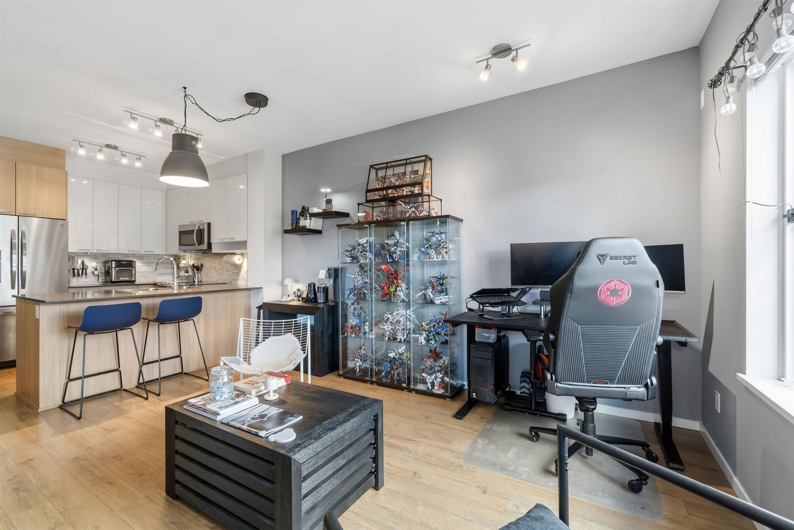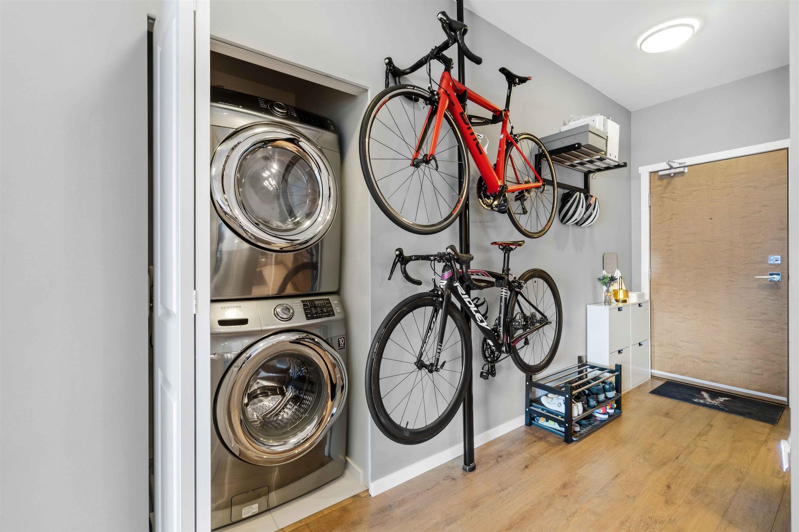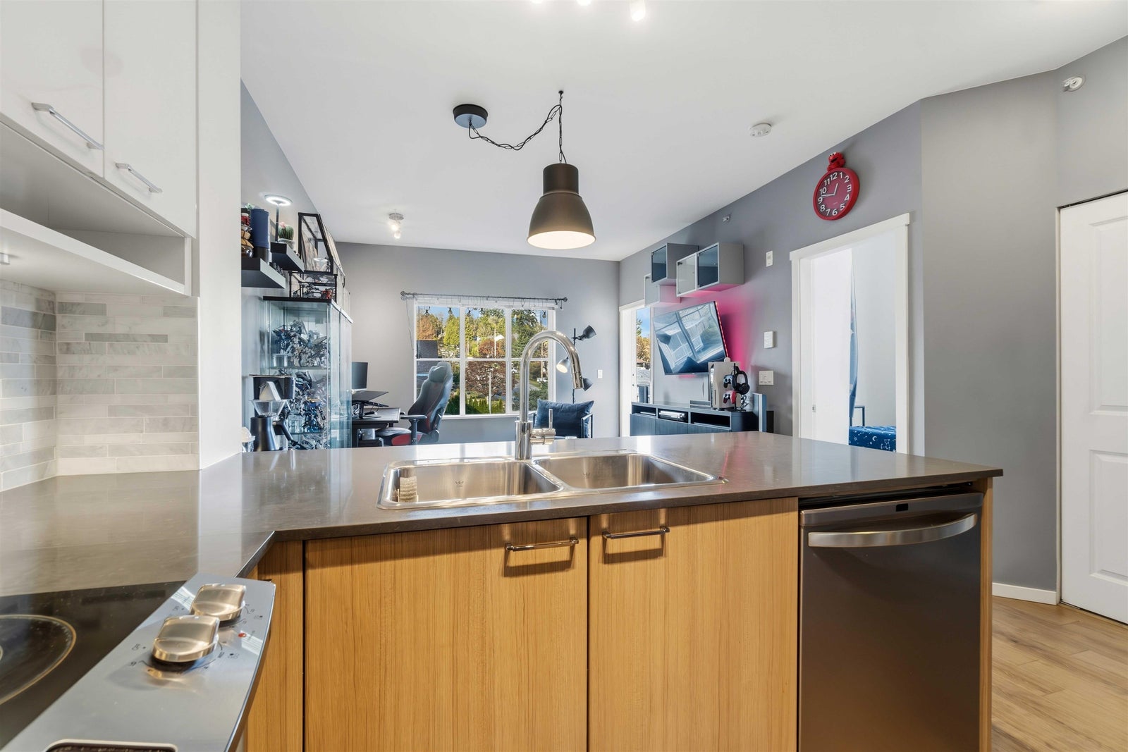 Welcome to MACKIN Park! This bright one-bedroom home offers 538 square feet of well-designed living with a clean, modern feel. The kitchen features stainless steel appliances, laminate flooring runs through the main living space, and the full-size washer and dryer add real convenience. The bedroom is comfortably sized, the bathroom is finished with contemporary details, and the home includes a secured parking stall and storage locker. Enjoy a strong lineup of building amenities, including a Fitness Centre, Bike Room, Car Wash Bay, and Resident Lounge. Located in Coquitlam’s Mackin Park neighbourhood, you’re steps from cafés, shops, parks, and transit, with quick access to Lougheed and nearby routes. BONUS INCENTIVE: Seller will pre-pay 6 MONTHS of strata fees!